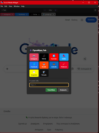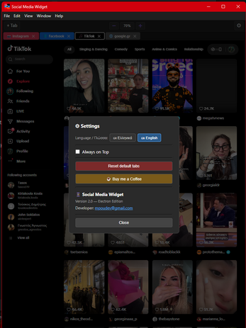 is a lightweight Windows desktop tool that lets you browse your favourite social media platforms in a compact, always-on-top mobile-style window — without opening a full browser.